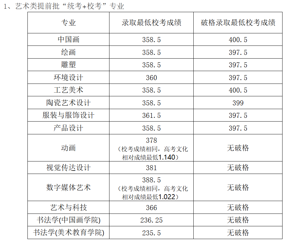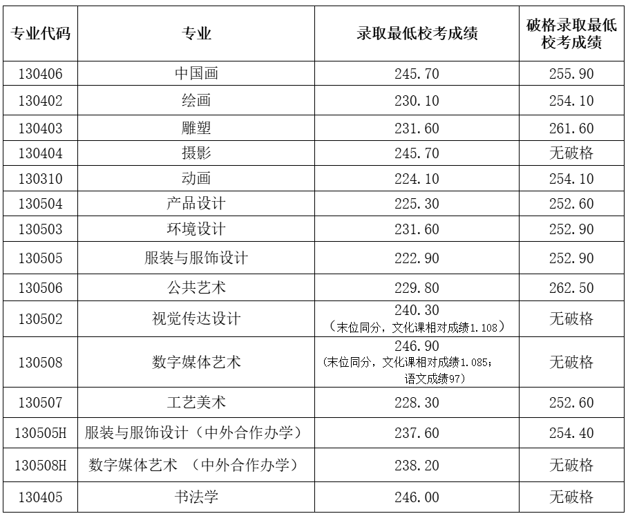 注:根据我校2024年本科招生各专业录取规则,校考录取考生须高考文化成绩达到所在省(自治区、直辖市)普通类专业本科批次录取控制分数线。