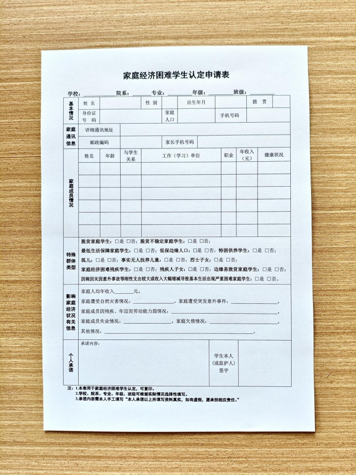 对有志于参军报国的新生,宣传单提供了详尽的信息和报名指导。保家卫国是每一个热血青年应有的梦想,我们期待你们在军营中绽放光彩。❊家庭经济困难学生认定申请表