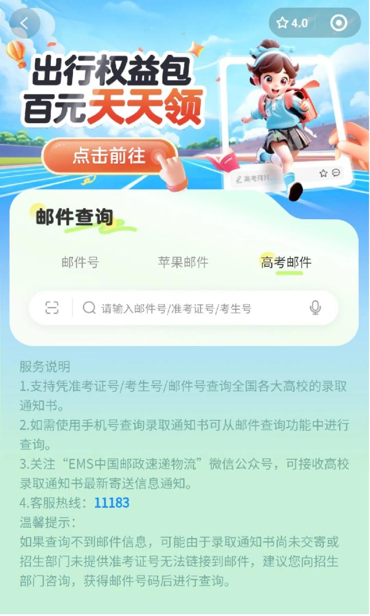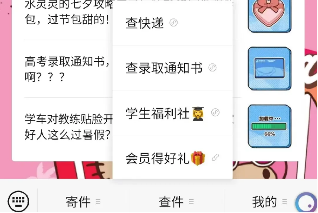 ❊2. 进入公众号消息页面,点击菜单栏的“查件”,选择“查录取通知书”。