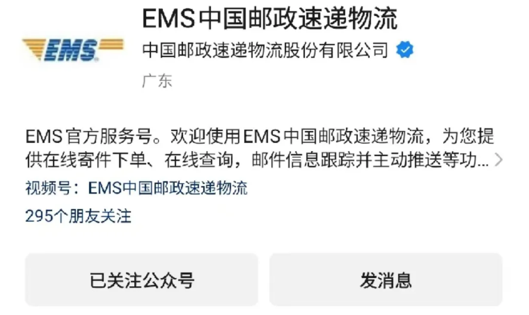 ❊1. 关注“EMS中国邮政速递物流”微信公众号。