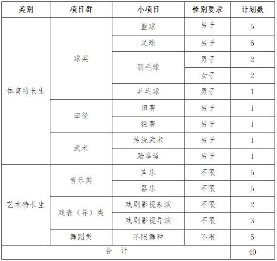 2.艺术、体育特长生招生计划各 20人,考生可在上表单招专业范围内自行选择报考专业,但每个专业最多录取特长生 10人。