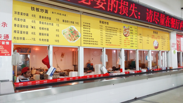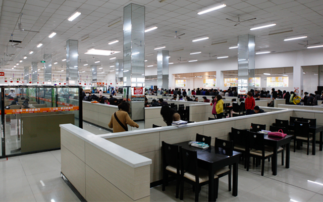 学院一座三层食堂,每层3300多平方米,总建筑面积9900多平方米,可供全校师生就餐。主、副食价位分高、中、低三个档次,学生可根据自己的口味和经济状况选择用餐。 一楼食堂 二楼食堂 三楼食堂