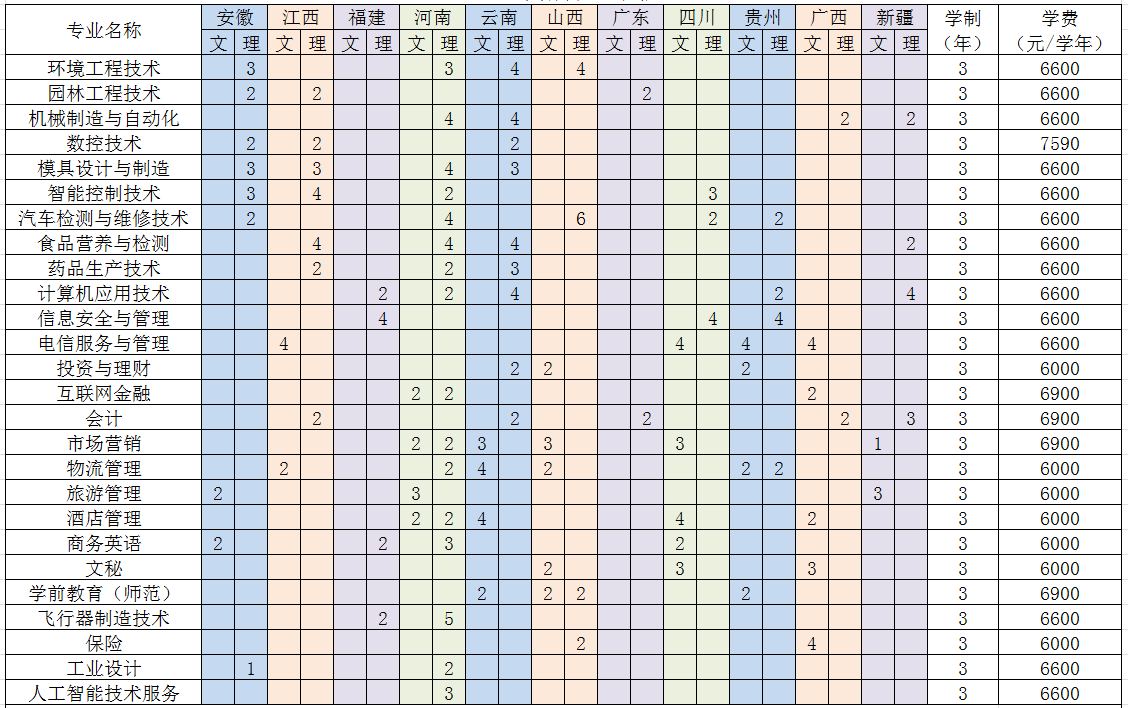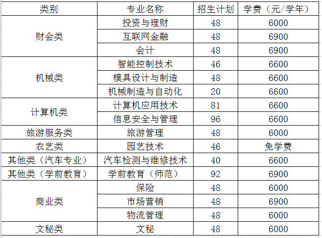 注:以上各类招生计划以各省教育考试院公布为准。其中汽车检测与维修技术专业,学生可自愿另向企业缴费参加校企合作班。