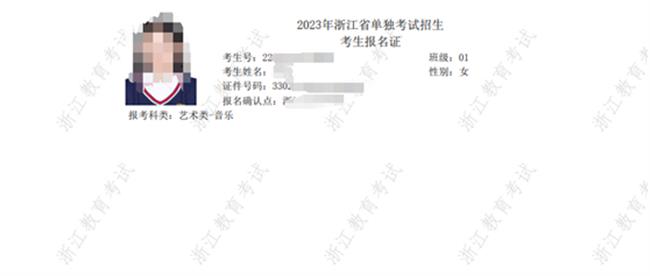 ②《2023年浙江省普通高校招生考生报名证》或《2023年浙江省单独考试招生考生报名证》照片。