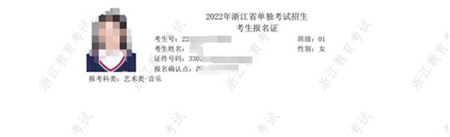 ②《2022年浙江省普通高校招生考生报名证》或《2022年浙江省单独考试招生考生报名证》照片。