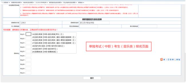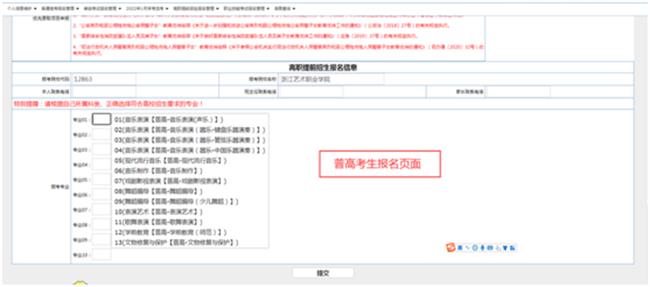 (2)填报专业志愿:每个考生限填报符合报考条件的两个专业,且兼报专业必须为同一专业类别,不可跨类别兼报(报考文物修复与保护和学前教育专业的考生不能兼报其他专业);若普高招生考生未按生源类别填报,单独考试招生考生未按浙江省职业技能考试对应类别填报,所填志愿无效。音乐类考生必须根据自身特长和所学专业的具体情况,填报相应的专业志愿。