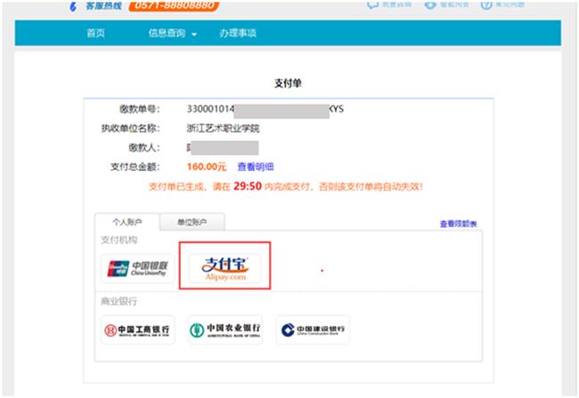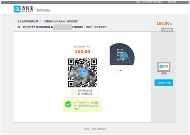 请务必使用电脑操作显示二维码后,支付宝扫码支付