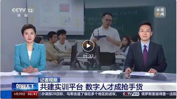 4月29日,中央电视台CCTV-13新闻频道《朝闻天下》栏目《共建实训平台 数字人才成抢手货》为题,1分27秒的新闻,深入报道学校数字化育人成果。我校现代通讯技术专业、软件技术专业师生出镜接受采访。