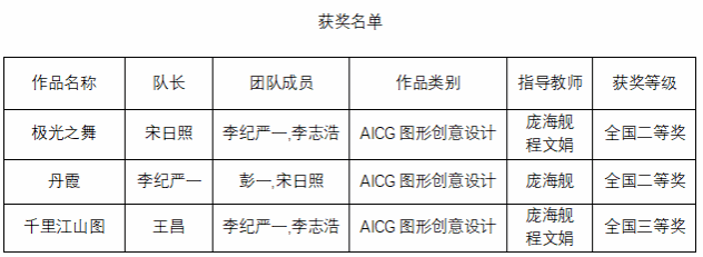 本网讯 近日,第十六届蓝桥杯AICG专项赛决赛结果揭晓,我校语言文学系学子获得全国二等奖1项,全国三等奖2项。由宋日照等同学创作的作品《极光之舞》、李纪严一等同学创作的作品《丹霞》均获得全国二等奖;由王昌等同学创作的作品《千里江山图》获得全国三等奖。三组作品以独特的视觉表达和技术创新,展示了数字艺术与人工智能的深度融合,体现了数字创意在文化传承与创新中的重要作用。