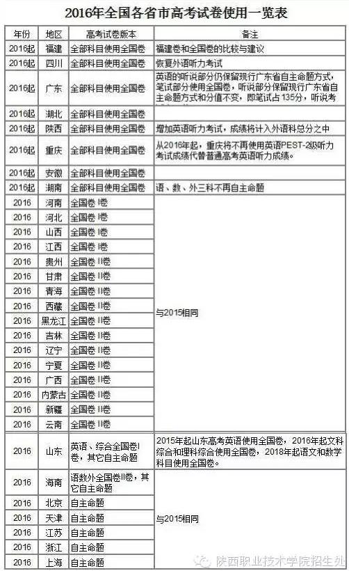以上就是为大家整理的有关语数外三科全国卷的分析和讲解,最后把今年的全国高考使用卷亮给各位,大家对照着上面找一找,你们今年考什么卷?