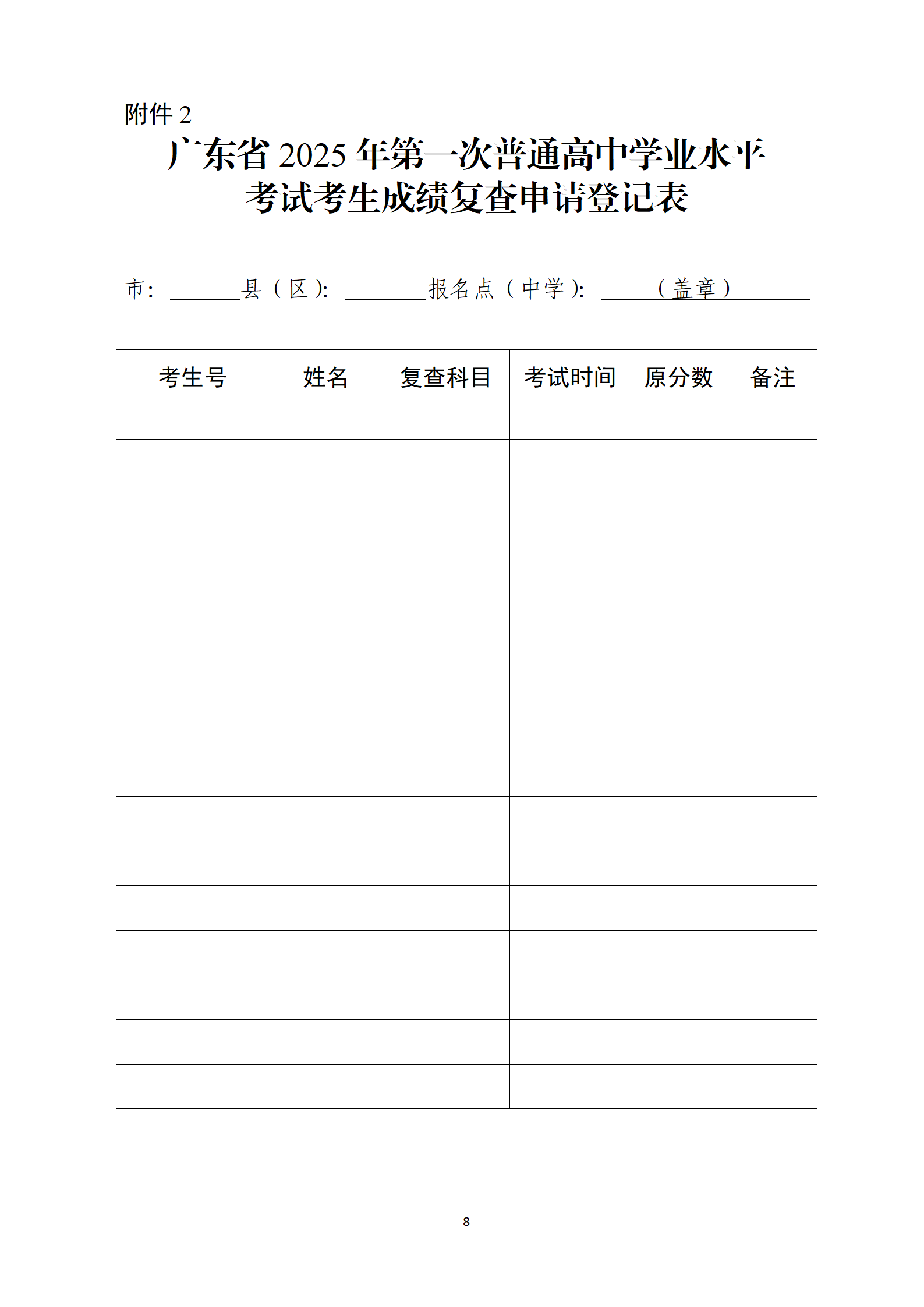 2.广东省2025年第一次普通高中学业水平考试考生成绩复查申请登记表