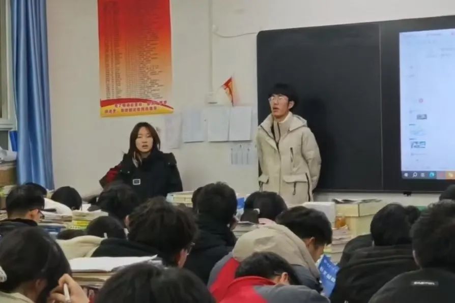 等他们进入教室,我面临了第二个问题,我该去哪个班级宣传,最后我选择了一个成绩不错的复读班,跟他们的班主任交流的也很融洽,不禁让我想起我的高中班主任,我给他说我用十几分钟介绍一下放个视频就行,但是他给了我半个小时,并对我说,给他门聊一聊天,也不能让他们一直压抑着学习,复读班压力很大。进入班级后,我自我介绍时没多少人抬头看,都在奋笔疾书,我把资料发给他们,然后放我的ppt,我准备的稿子很有趣,到后面大家也开始听我介绍。介绍结束之后,我开始向他们说我的大学生活经理,以及大学中的各种事情,氛围很融洽,大家很喜欢提问,我也乐意回答,在他们眼中我看到了他们对大学生活的渴望,也看到了曾经的自己。