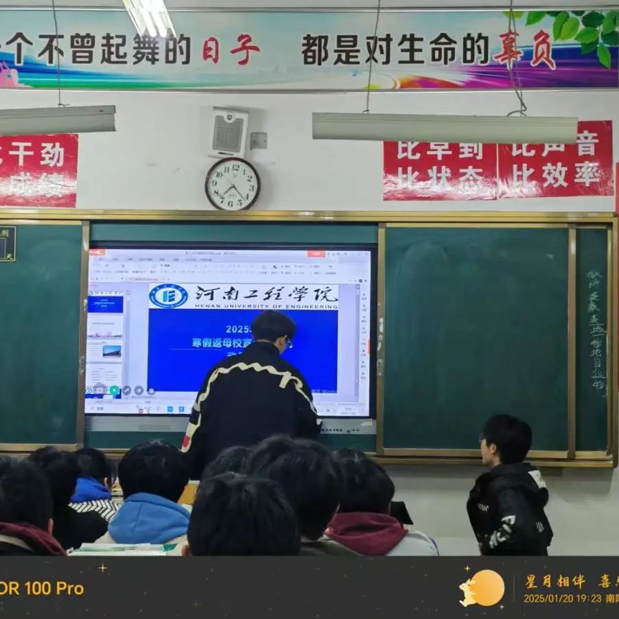与老师重逢,亲切汇报大学学习生活点滴,课程的多元、科研初体验、社团活动的精彩,老师们欣慰不已;发放河南工程学院宣传册,宣讲会上从学校历史底蕴、王牌专业、师资力量到校园文化、就业升学佳绩,全方位展现学校魅力;走进教室,以亲身经历讲述大学学习自主探索的过程、多彩社团生活、宿舍情谊,传递梦想力量,学弟学妹们眼中满是憧憬。