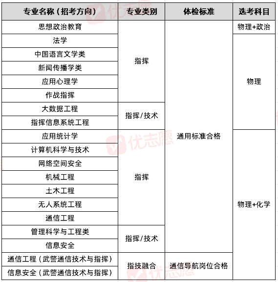 从专业类别上看,学校的招生专业包含指挥、技术和指技融合三个类别。指挥类专业和技术类专业在培养目标上大有不同,指挥类专业着重培养学员的领导决策与组织指挥能力,未来的发展方向是成为指挥管理警官;而技术类专业则聚焦专业技术知识与技能的传授,培养专业技术警官。
