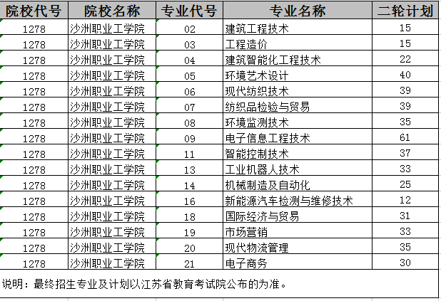沙洲职业工学院2023年高职提前招生第二轮招生专业及计划
