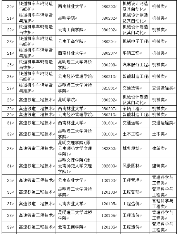昆明铁道职业技术学院关于2022年普通高等学校专升本招生专业公示的通知