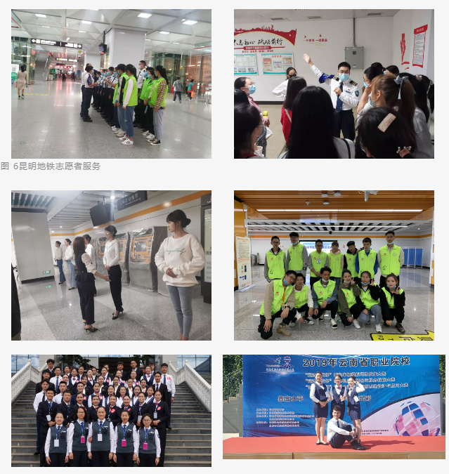 铁道运输学院利用紧贴生产实际的实训基地、人才资源为基础,开展产学结合,以优势的校内实训基地资源为平台,积极为企业新职人员和在岗职工的培训和提升搭建合作教育平台。专业设置和开发紧跟企业的发展,为满足企业发展的需要及时培养专业人才,按岗位目标的要求组织实施教学过程,提升毕业学生的岗位适应性和岗位发展力。铁道运输学院先后与昆明轨道交通有限集团公司、云南京建轨道交通投资建设有限公司、中国铁路昆明局集团有限公司等企业开展了实质性的合作。2017年与贵阳市城市轨道交通有限公司探讨了城市轨道交通专业的人才培养方案;2016-2019年不间断地与中国铁路昆明局集团有限公司广通车务段、曲靖车务段等单位对课程体系、教学计划、课程标准及实训室建设等方面进行研讨,企业专家积极提供智慧,在校企共同努力下完成了19年、20年人才培养方案及实施性教学计划的修订,多门专业课的课程标准及实训指导书的制定及修订。2020年学院全体师生共同参与昆明创文活动,承担昆明地铁志愿者服务。2021年参与中老铁路培训任务。
