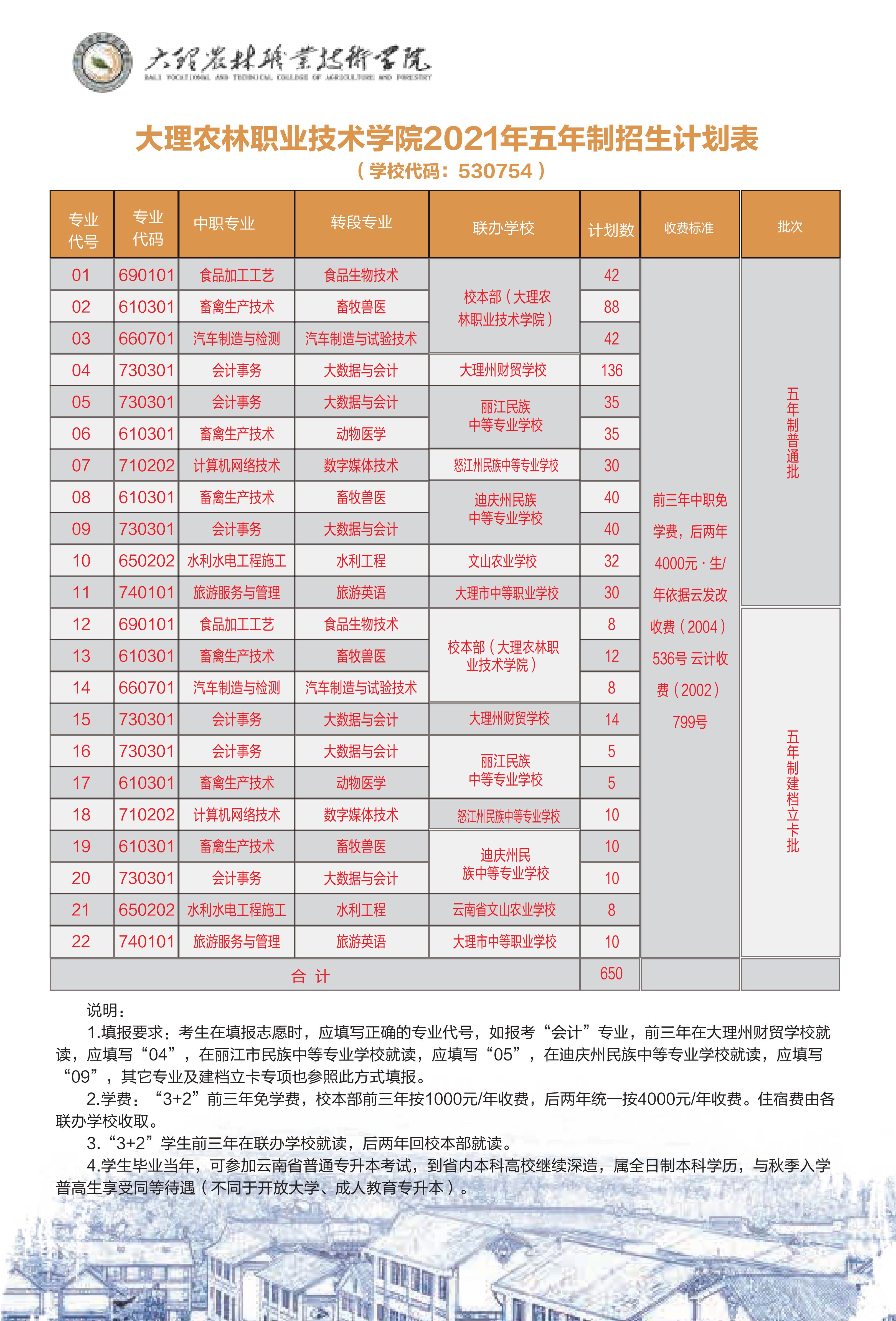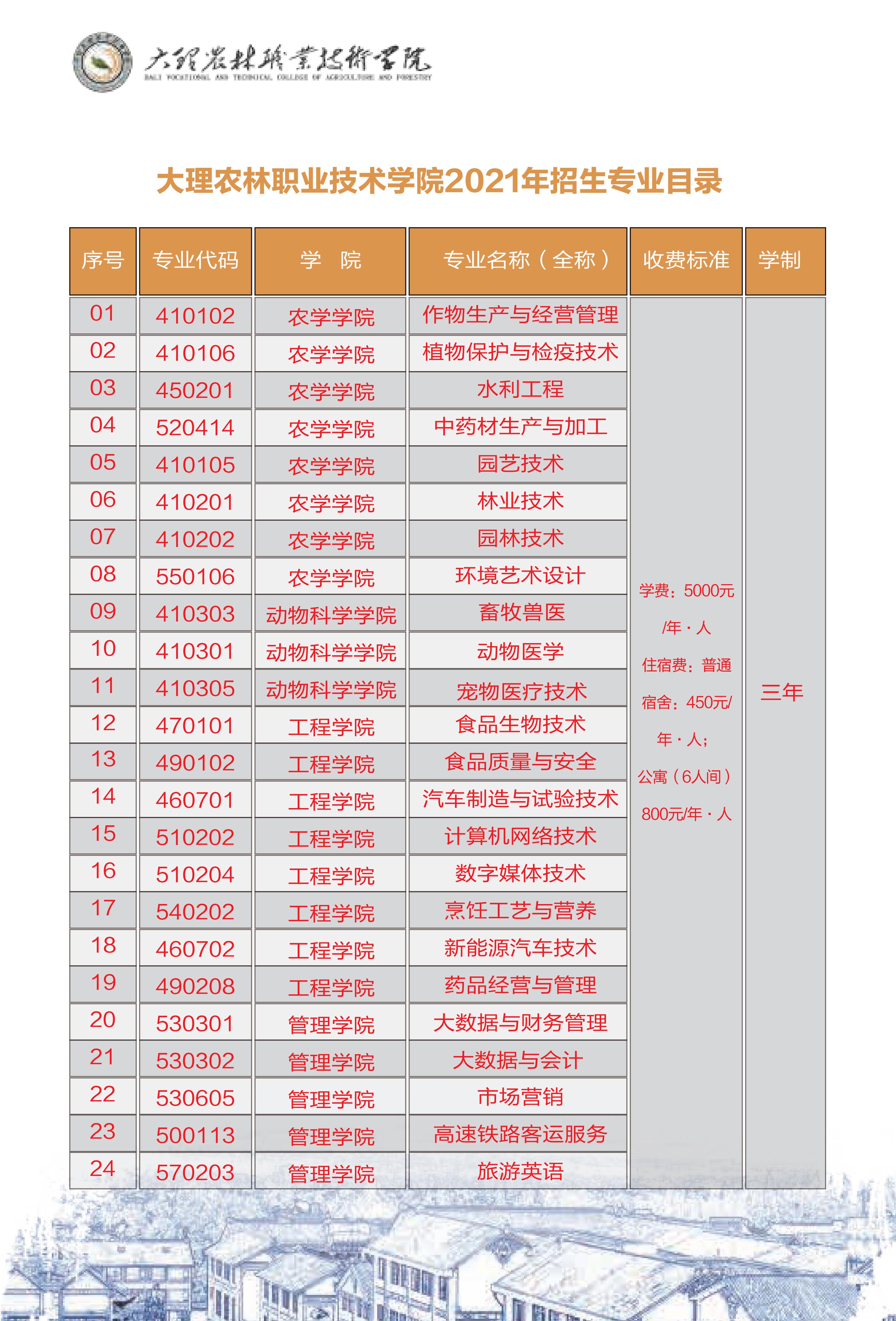 大理农林职业技术学院2021年招生简章