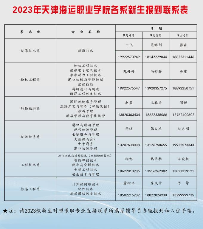 2023级新生报到流程图及联系表