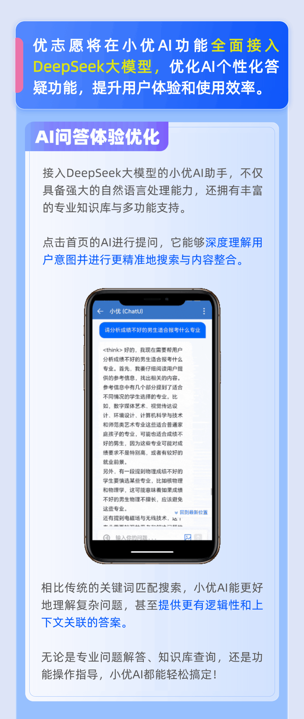 优志愿接入DeepSeek,小优AI全新升级上线!