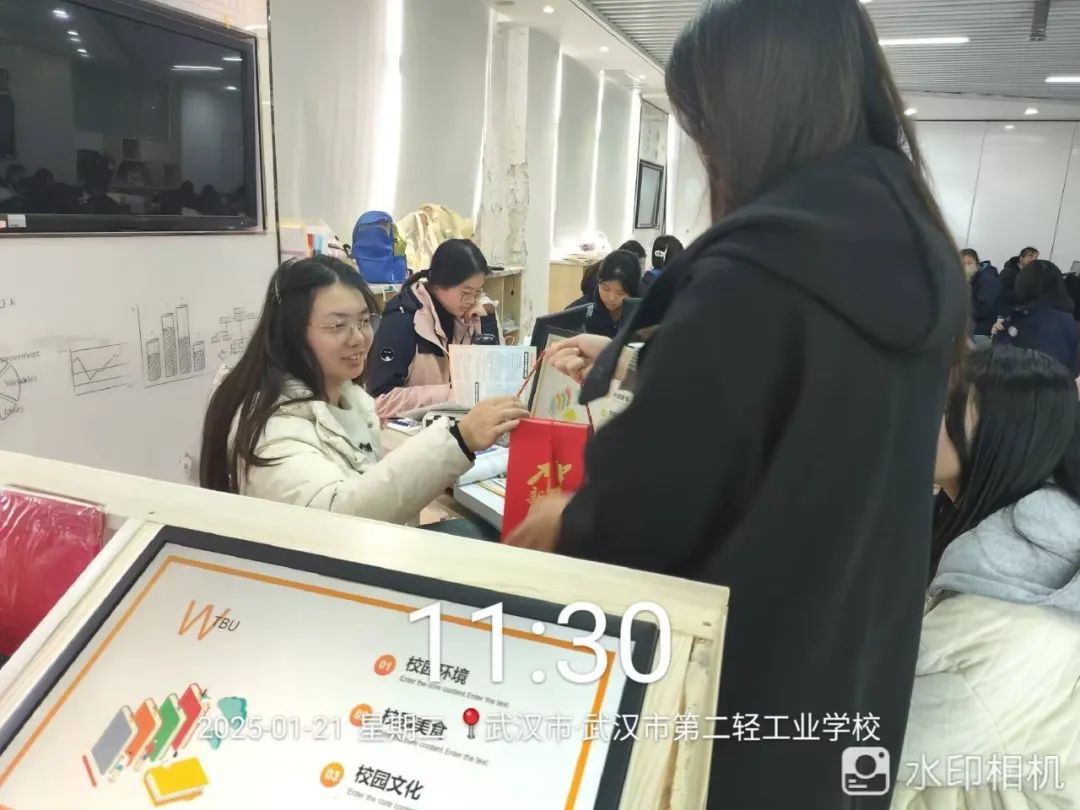 为缓解学弟学妹们的学习压力,激发参与热情,我们团队还准备了暖心的小礼物。大家在气氛的烘托中逐渐放松下来,踊跃提出了对武汉工商学院教育教学、生活环境、学习氛围等感兴趣的问题,我们一一耐心解答、赠送奖品。