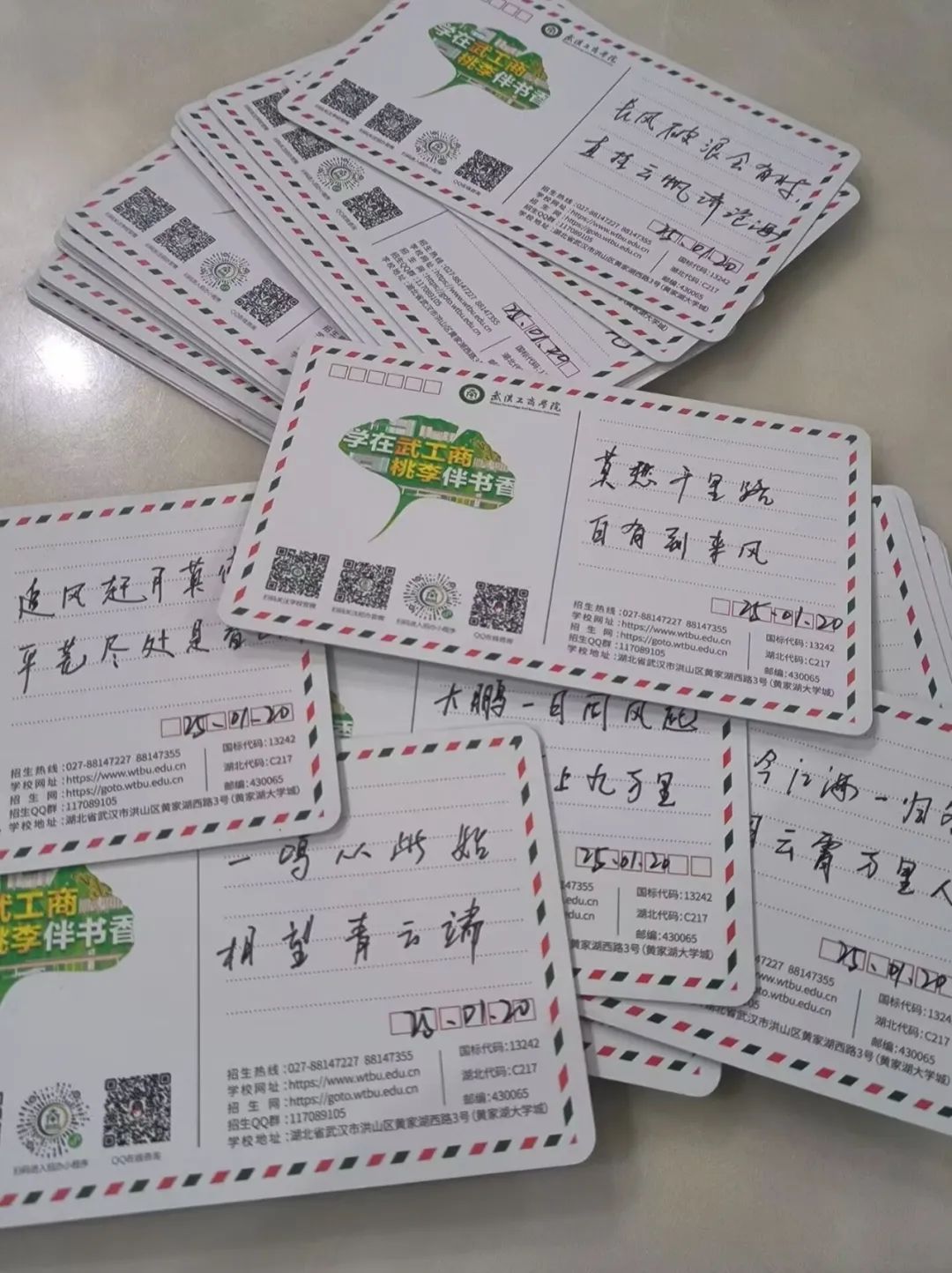 我们精心准备了手写明信片,每一张都承载着对即将高考的学弟学妹们的真挚祝福,希望通过这种方式为他们加油打气,传递温暖与力量。