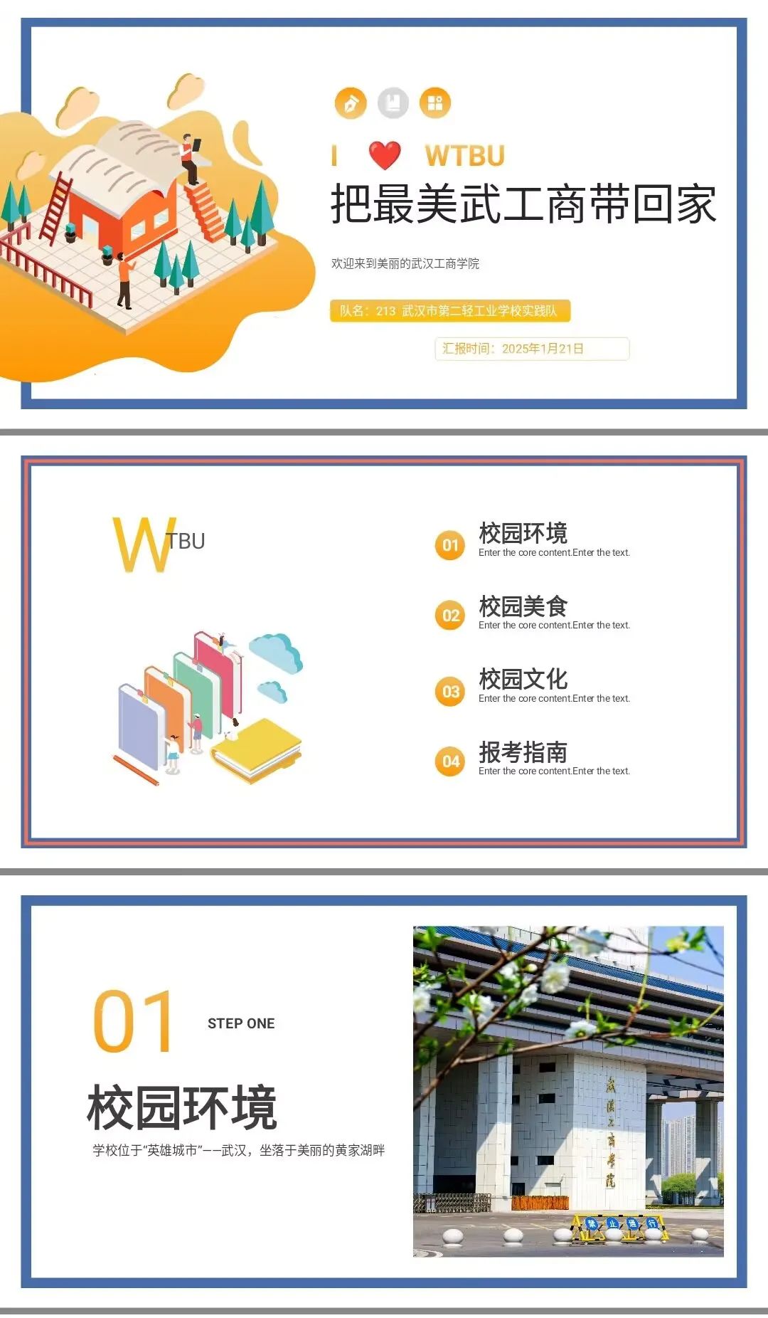 在精心设计的PPT中,我们详细总结了武工商的校园环境、教育资源及地理位置等诸多优势,成为纸质宣传资料的有力补充,这为学弟学妹们全面了解武工商提供了宝贵的参考。