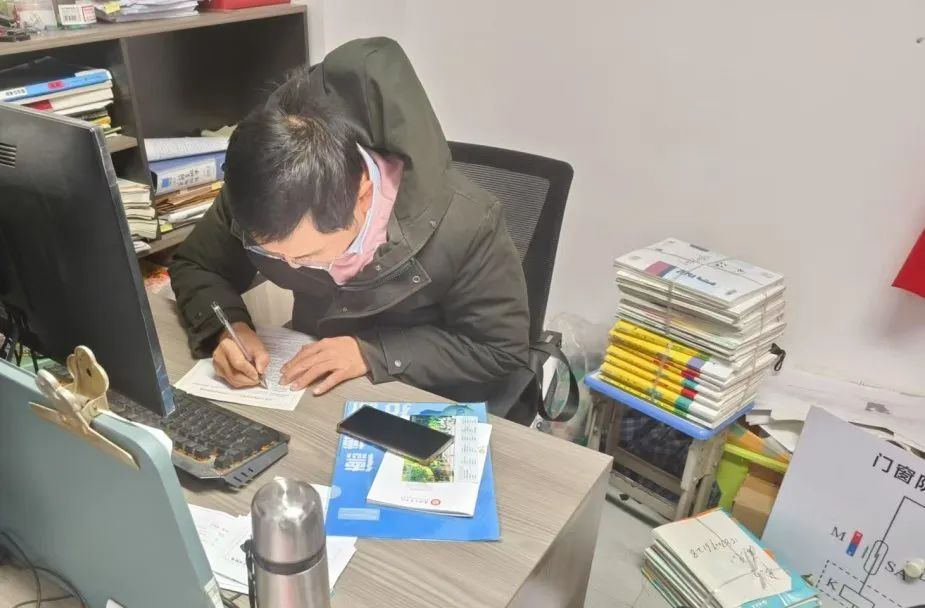 △在教师办公室向高中老师汇报成长经历,老师们认真填写调查问卷△