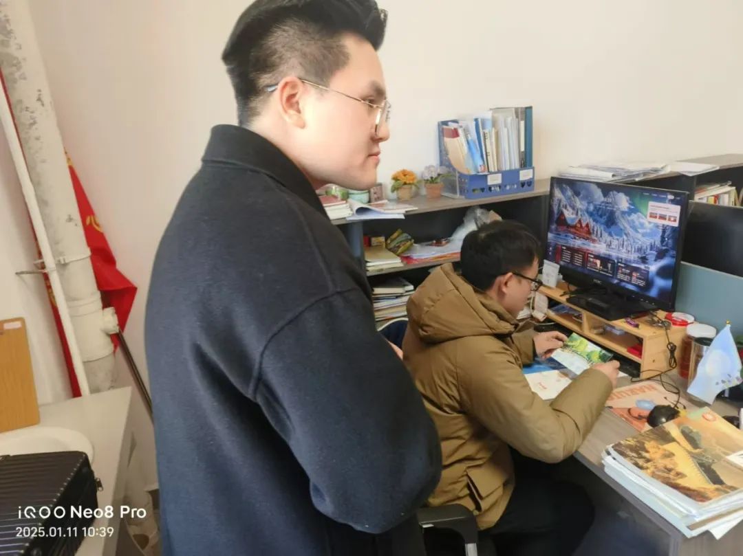 由于到的时间略有点早,和学校对接好的时间段是在学生们放学后,这段时间刚好可以找到了高中时期的各学科老师叙叙旧,两位实践队员有点兴奋,又有点紧张,敲开了老师办公室的门。老师们抬头,眼中闪过一丝惊讶,随即被温暖的笑意所取代。与实践队对接的老师首先开口,声音里满是欣喜:“来啦!快进来坐!”