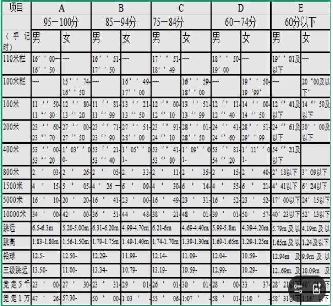 考生可穿钉鞋。每人测试1次,成绩计取到百分位。计取成绩使用手计时,使用手计时,每道须由3名考评员计取成绩,所计成绩的中间值或相同值为最终成绩。