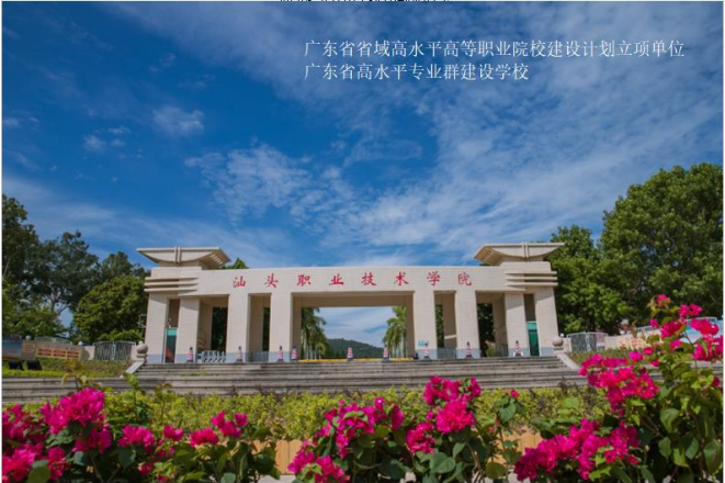 汕头职业技术学院是一所综合类公办全日制普通高等职业技术院校,是广东省省域高水平高等职业院校建设计划培育单位和广东省高水平专业群建设学校。现有校本部、金园校区、新津校区和东墩校区四个校区,校园占地面积566亩。设有电子信息学院、先进制造学院、财经商贸学院、应用外语学院、建设生态学院、文化旅游学院、艺术设计学院7个二级学院47个专业,其中建设工程管理专业从2021年起与本科院校联合招收“3+2”本科生。全日制在校生1.45万人。从2024年开始,我校商务英语专业与英国桑德兰大学开展学分互认中外联合培养项目。