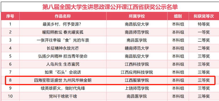 新闻中心讯(供稿/马克思主义学院)根据《教育部办公厅关于开展习近平新时代中国特色社会主义思想大学习领航计划主题教育活动的通知》(教社科厅函〔2024〕15号)安排,我校马克思主义学院思政课教师王雅丽、刘佳华、陈洋安老师指导的大学生讲思政课作品《四海笙歌讴盛世九州风华映金朝——科技创新赋能南昌高质量发展》荣获“七十五载薪火传承,千秋伟业奋斗有我”——第八届全国高校大学生讲思政课公开课展示活动三等奖。