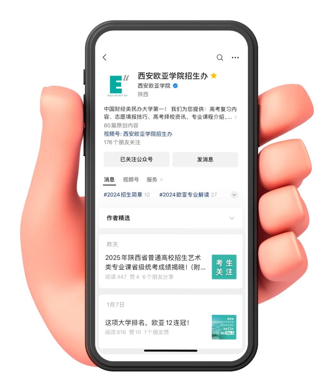 西安欧亚学院招生办官方微信公众号(微信号:ouya_zsb )会及时发布我校招考信息,考生及家长也可通过微信公众号相关功能查询我校学校概况、专业介绍、招生信息等,同时可以进行后台留言。