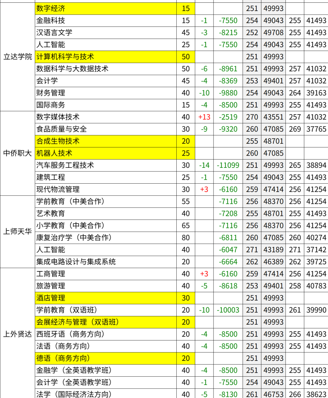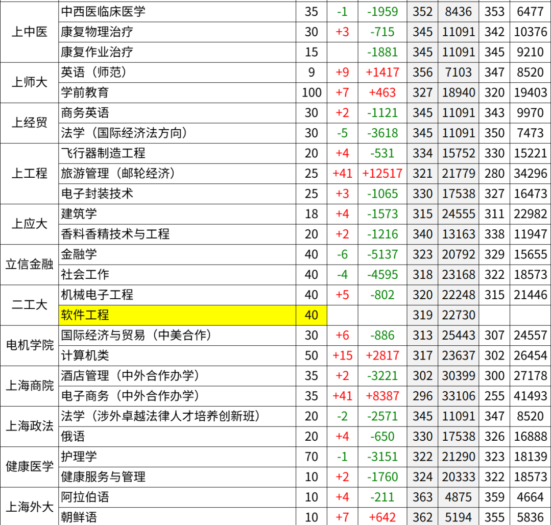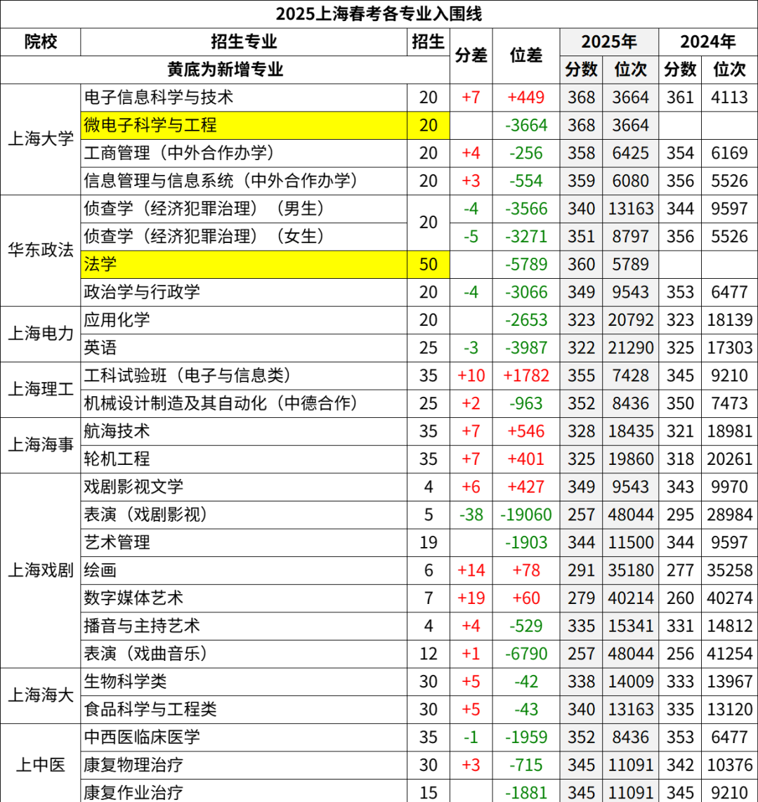 2025年上海春考入围线公布,共有37个专业涨分,4个专业与去年入围分数相同,49个专业降分,接近控分线(≥251分,≤255分)的专业高达37个。