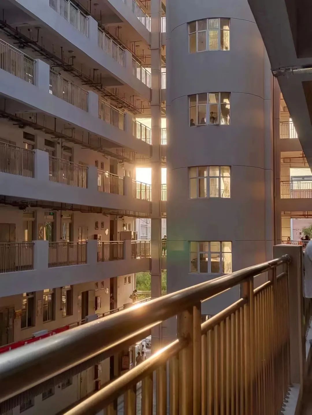 阳光透过窗户洒进走廊,金色的光芒温柔地铺满了整个空间,仿佛为每一寸角落都镀上了一层温暖的光辉。白色的墙面在阳光下显得格外明亮,这样的场景让人感受到一种静谧的美好,仿佛时间在这里变得缓慢而悠长。