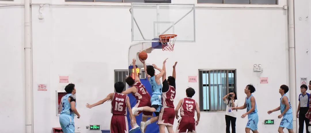体育馆内永不放弃的精神。仿佛时间在这一刻凝固。球员如同展翅的雄鹰,在空中奋力一搏,争夺每一次得分的机会。蓝色和红色的球衣在灯光下显得格外鲜艳,仿佛两股力量在场上交汇,激发出无尽的能量。仿佛自己也置身这场激烈的比赛中。