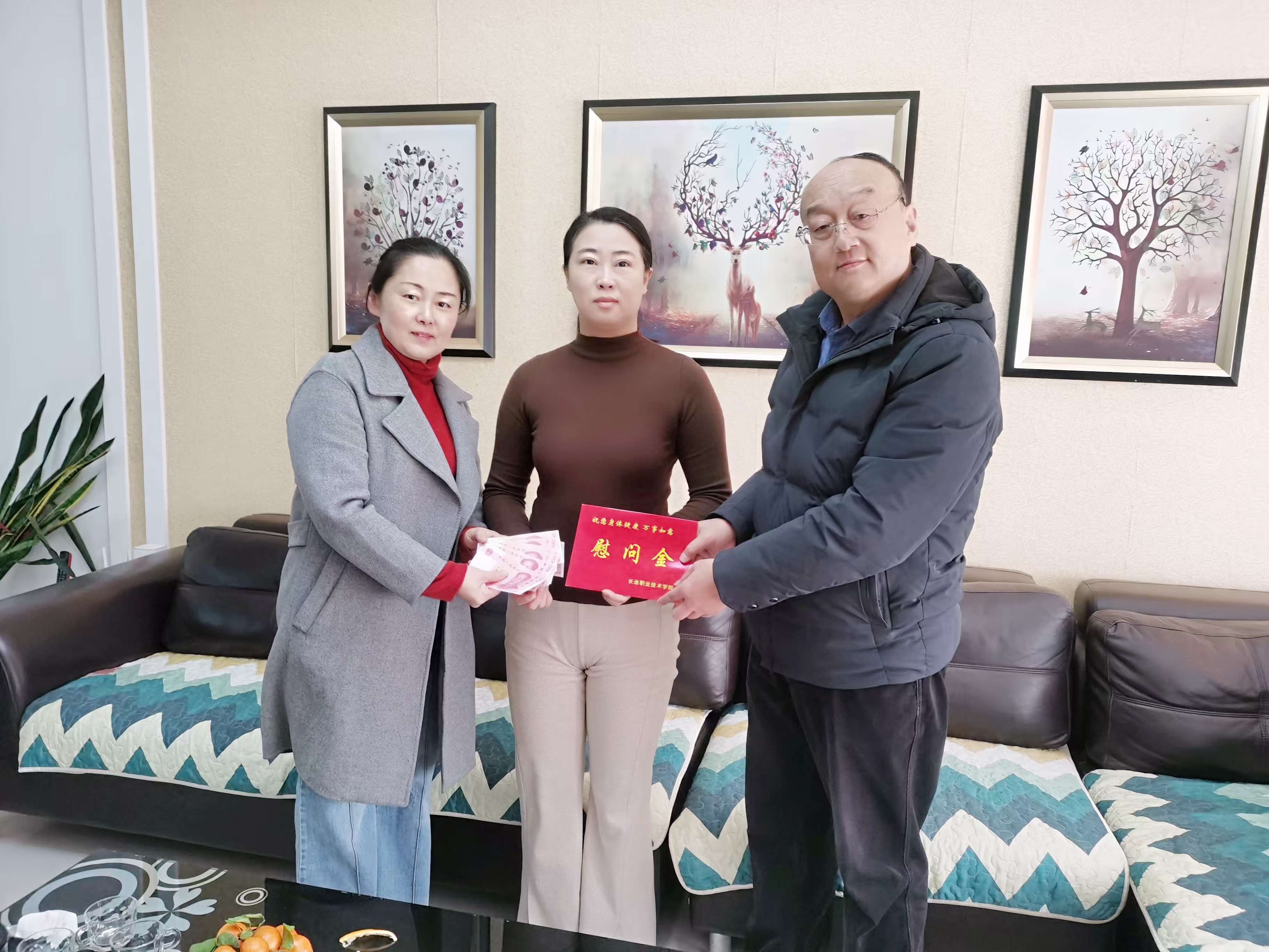 春节将至,暖意先行。1月17日上午,在新春佳节来临之际,我院开展了一场温馨而充满关怀的2025年春节慰问活动,此次活动由院党委委员、副院长景建国带队,党委委员、宣传部部长王庆华,党委委员、组织部部长程峰,工会主席陈慧等参与,代表学院为部分教职工送上了暖心的慰问金和慰问品,向他们转达了院党委的关心,送去了新春的祝福和节日的问候。