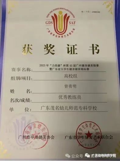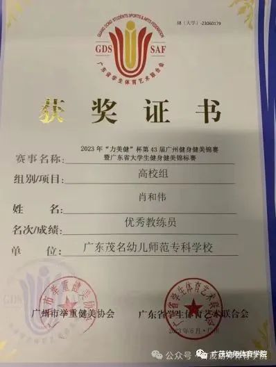 2023-2024学年广东省职业院校技能大赛(高职组)健身指导赛项,肖和伟、曾勇明获“优秀教师”称号!