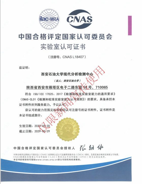 此次CMA资质认定,我校现代分析检测中心共获批原油、天然气、采油助剂、岩石、工业用油、化工产品、地下水和废水等8类90个检测项目参数的资质认定。这标志着中心在检验检测技术能力、场所环境条件、设备设施配备和质量管理水平等方面已具备国家有关法律、行政法规规定的基本条件和能力,可以向社会出具有证明作用的数据和结果。这为学校在相关领域开展科学研究和检测服务提供了强有力的资质保障,标志着学校现代分析检测中心的检测水平和能力迈上新台阶。