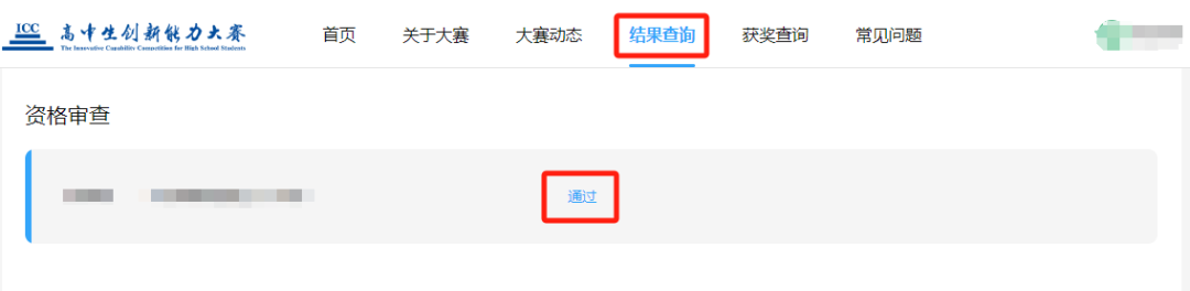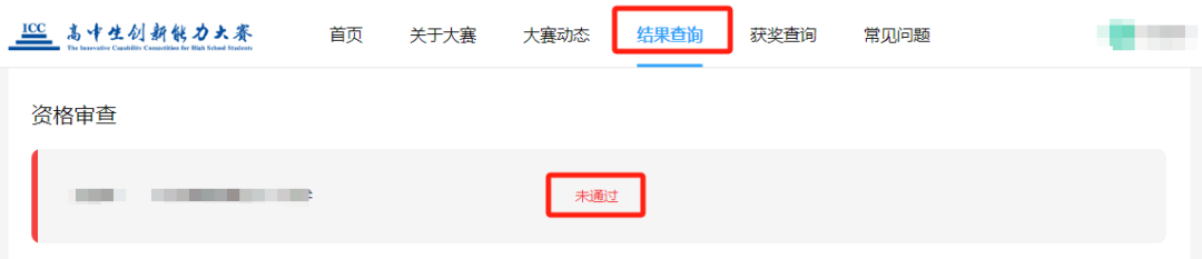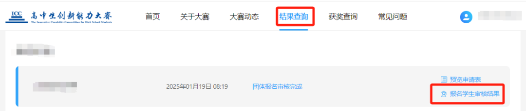 2025年高中生创新能力大赛全国初赛资格审查结果已经公布,请考生登录高中生创新能力大赛官网(www.iccedu.com.cn)进行结果查询。现将有关事宜通知如下:1.学生使用个人账号(账号为证件号,密码为证件号后六位),老师使用团体账号登录高中生创新能力大赛官网(https://www.iccedu.com.cn/),点击“结果查询”。2.进入“结果查询”页面后会出现如下页面,即可得知审查结果。①团体账号页面如下:②个人账号页面如下: