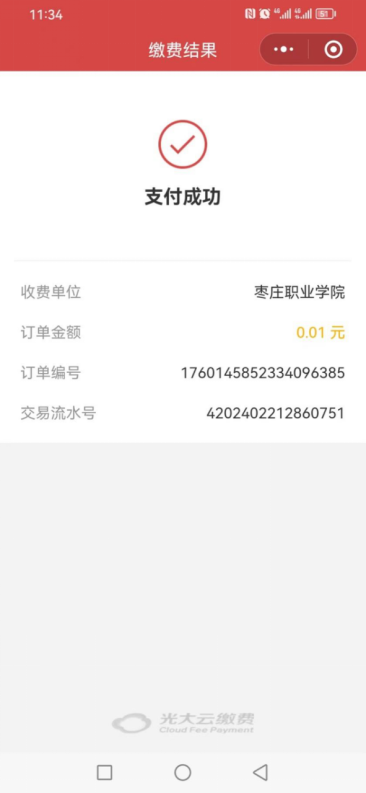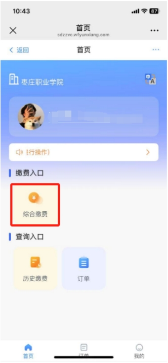 方法二:搜索并关注“枣庄职业学院财务处”公众号,点击学生缴费
