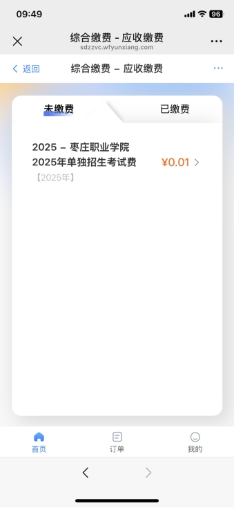 5.点击“枣庄职业学院2025年单独招生考试费”
