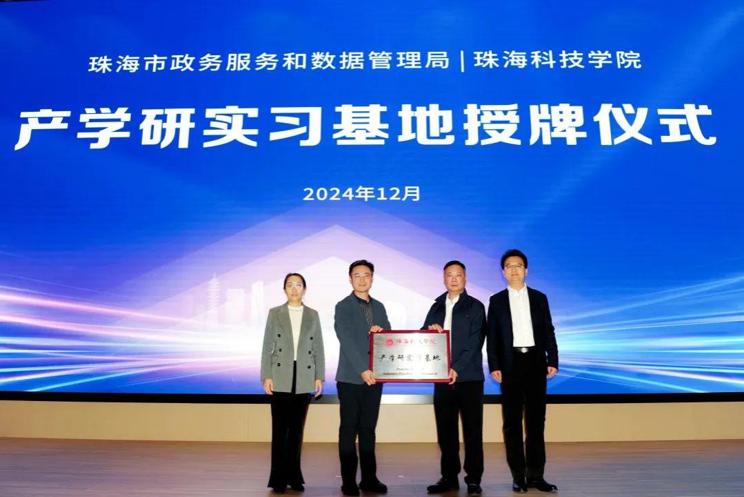 12月30日下午,珠海科技学院与珠海市政务服务和数据管理局(以下简称“市政务和数据局”)在珠海市民服务中心成功举行产学研实习基地授牌仪式。此次合作旨在深化政校合作,推动产学研深度融合,共同探索教育链、人才链、产业链与创新链的有机衔接,为珠海市经济社会发展提供坚实的智力支持和人才保障。