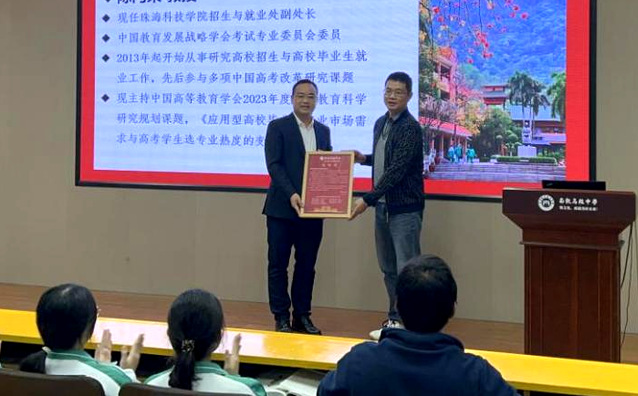 为进一步推进高中与高校协同育人工作,让高中生了解在新高考背景下的生涯规划、高校的人才培养计划以及未来的专业技能需求和就业发展趋势,精准把握未来学习方向。12月10日,我校招生与就业处副处长陈闪荣应邀到佛山市南海区南执高级中学开展高三生涯规划指导专题讲座。