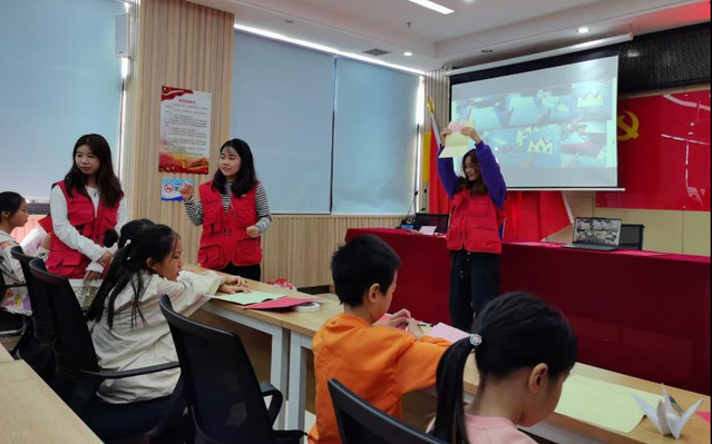 青年马克思主义研习社学生代表带领孩子们制作红色火炬