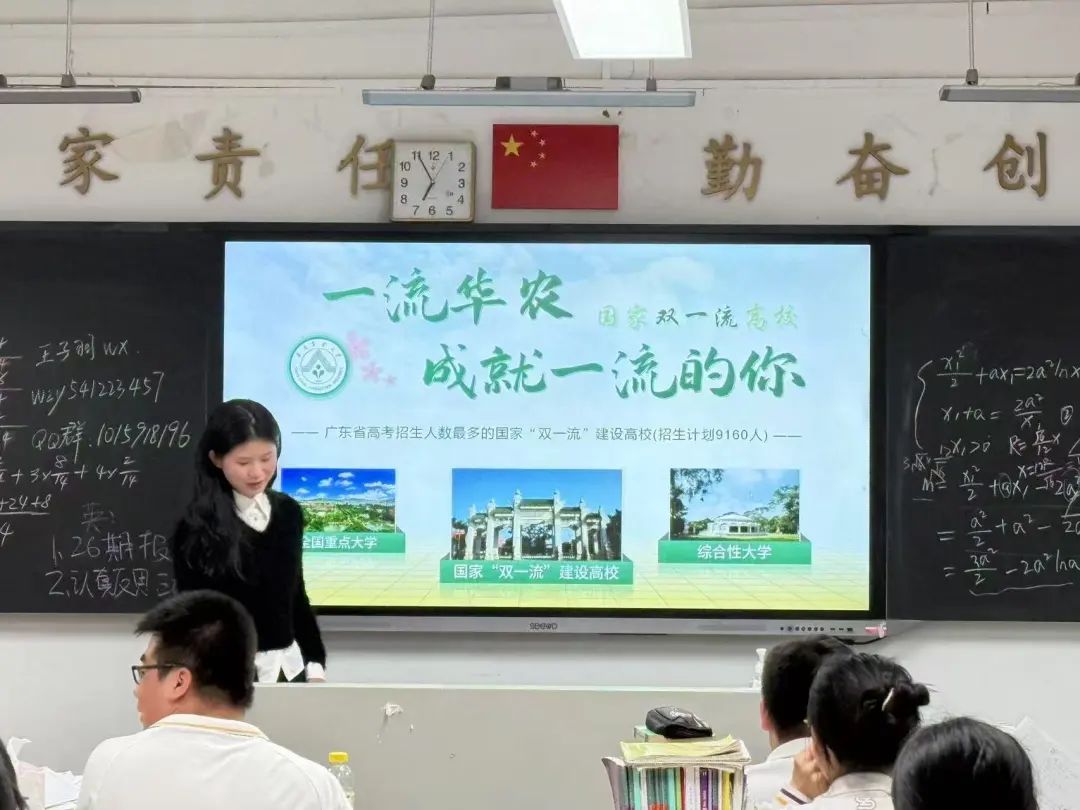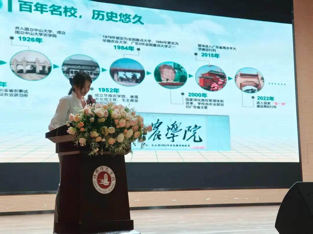 宣讲活动在精心制作的 PPT 辅助下拉开帷幕。宣传大使们从华南农业大学的历史底蕴讲起,讲述了学校在农业科研、人才培养等方面的卓越成就,让同学们对这所充满活力与潜力的高等学府有了初步的了解。随后,他们详细介绍了学校的学科专业设置,涵盖了农学、工学、管理学等多个领域,展现了学校多元化的教育体系。精美的图片、详实的数据和生动的案例,让同学们仿佛置身于华南农业大学的校园之中,感受着那里的学术氛围与青春活力。