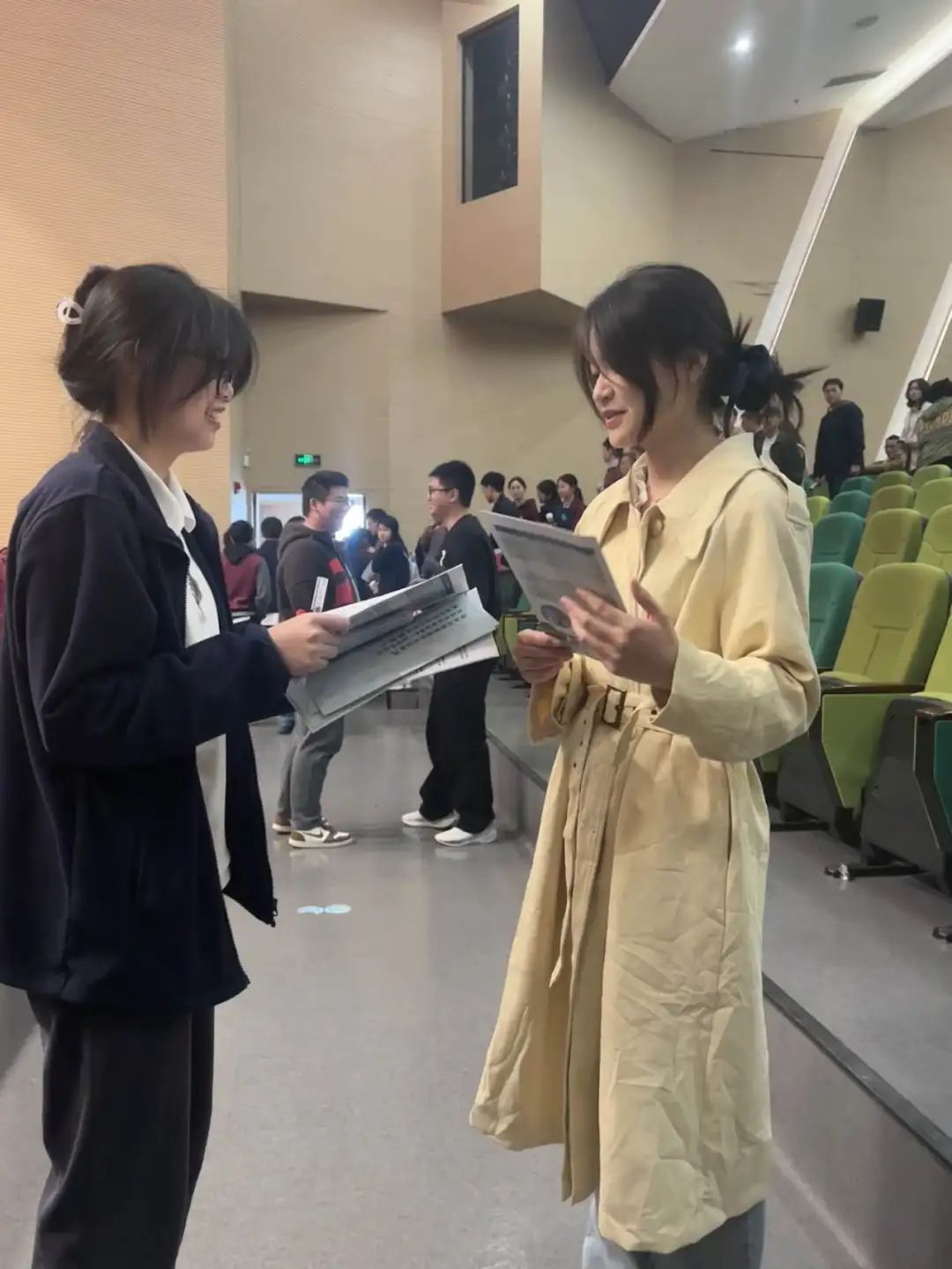 宣讲结束后,许多学生和家长围了上来咨询详细情况。有同学关心热门专业的课程安排与就业方向,也有学生好奇宿舍条件和校园设施,面对各种问题,他们都一一解答。看着这些活泼可爱的面孔,宣讲队员们都不由得想起了自己从前奋斗的时光,他们再一次鼓励学子们为自己的理想而努力拼搏。