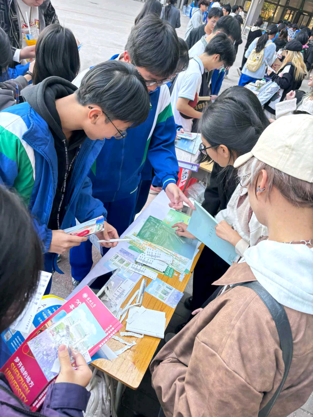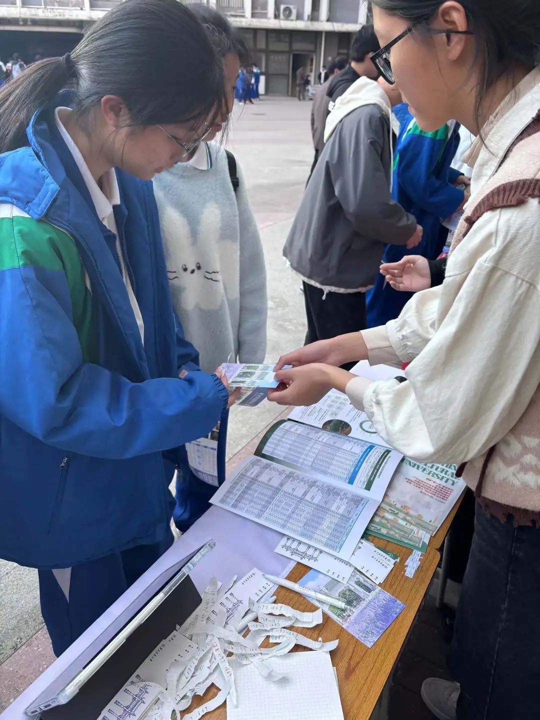 宣讲活动以线下摆摊的形式展开,宣讲团队成员们用生动的语言和丰富的案例,向同学们详细介绍了华南农业大学的校园环境、住宿条件以及多专业多选择的优势。他们通过展示精美的图片和视频,让同学们仿佛置身于校园之中,真切地感受到华南农业大学的魅力。宣讲过程中,团队成员还与同学们积极互动,耐心解答他们关于专业选择、分数线等问题,现场气氛热烈而活跃。