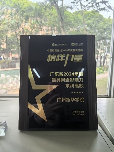 近日,中国教育在线“榜样力量·2024年度教育盛典”优秀案例公布,广州新华学院荣获“广东省2024年度最具网络影响力本科高校”奖项。