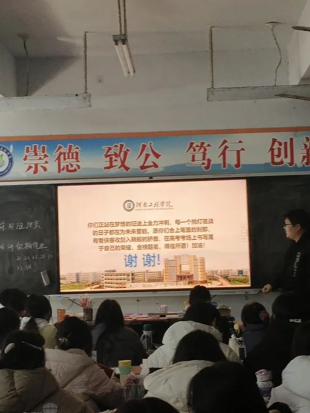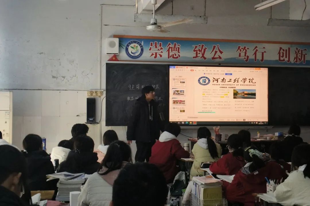 这次活动不仅仅是宣传我们河南工程学院,也是我们对过去高三生活的一次回忆,虽然大学和高三只是时隔半年,但是这其中转变之大却令我们恍若隔世,重新进入高中教学楼,看着熟悉的一砖一瓦,曾经在高三的经历真的会涌入脑海,索性如今轻舟已过万重山,老师还是和以往一样在班级里保持着威严,严格要求学习和纪律,但是私下里,不管是面得我们这些以及高考上岸的往届生,还是课余时间的在校生,都是和蔼可亲的,在等待和学弟学妹们宣讲的时候,老师也为我们以后的发展给出了建议,一日为师长,便永远愿意当我们的引路人。高三的学弟学妹十分热情,和我们去年一样,对大学来的学长给予了热烈的欢迎和掌声,在描绘我们河南工程学院的环境的时候,能感受到他们很高的兴致的向往,试问哪个高三学子不憧憬未来高考鱼跃龙门?他们看着我们播放的风景双眼满是期望,祝愿他们每一个人都能考个理想的成绩,金榜题名。